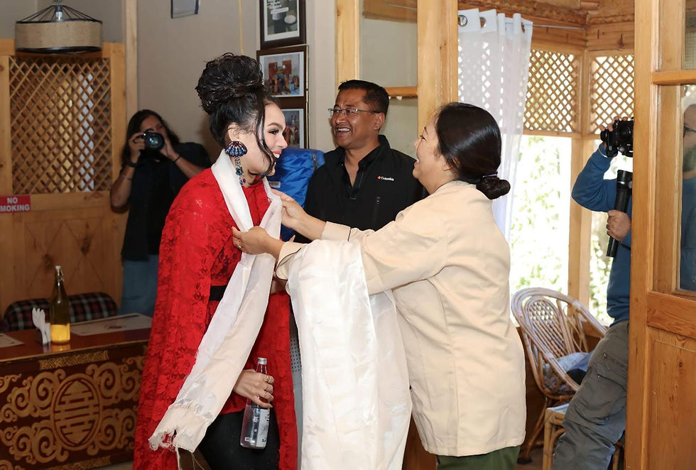 Enjoying a delightful meal in Vibrant Ladakh with distinguished dignitaries - Honourable Chief Executive Councillor Ladakh Autonomous Hill Development Council Shri Tashi Gyalson ji, Dr Pawan Kotwal -Advisor to the Honourable Lt.